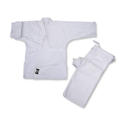 Judo uniform M/O white single weave (325 - 350 gms) Cotton 100%. With or without belts, trouser with or without elastic waist.
