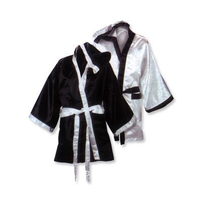 Description: Boxing gown made of 100% polyester (satin) with stripes on shoulders to cuff.available in any colour.