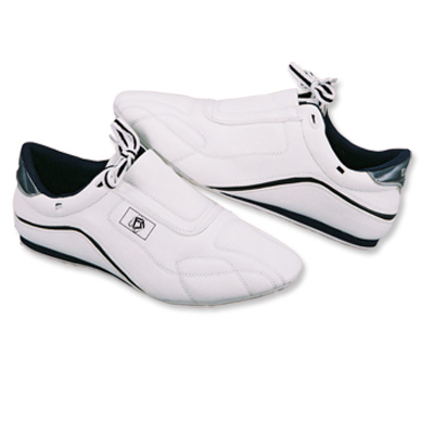 Description: Taekwondo shoe made of synthetic leather with robber sole glued and stitched.