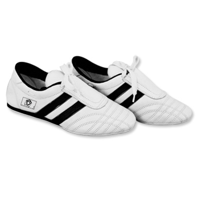 Description: Taekwondo shoe made of synthetic leather with robber sole glued and stitched.