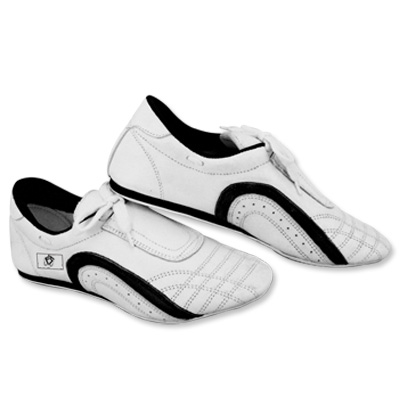 Description: Taekwondo shoe made of synthetic leather with robber sole glued and stitched.